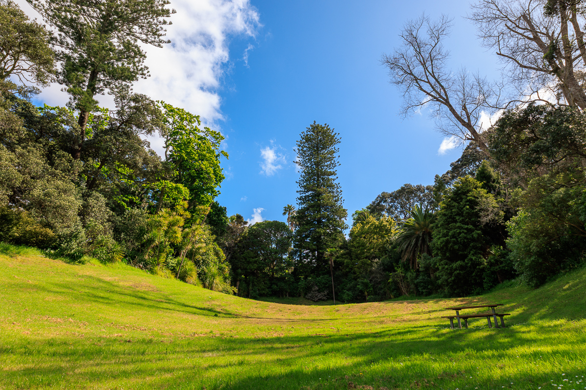Einmal in der ersten Woche kam ich aus Auckland heraus: Ich fuhr mit der Fähre zur Insel Waiheke. Anstatt vom Hafen den Bus in die nächste Ortschaft zu nehmen, ging ich direkt auf einen Wanderweg, der vom Hafen auf einen Hügel hinauf führte. Bei strahlendem Sonnenschein leuchtete alles in Hellgrün und Vögel pfiffen. Einer dieser Vögel machte sehr lustige Geräusche, wie R2-D2 von Star Wars. Es war das erste Mal, dass ich Neuseelands Natur erlebte und ich war hingerissen. Ich begegnete kaum anderen Leuten, obwohl Waiheke ein beliebtes Ausflugsziel ist. Die Wanderung führte mich auf der anderen Seite hinunter an eine einsame Meeresbucht und von dort aus zur Ortschaft Oneroa, die einen breiten Sandstrand hatte. Dort trank ich in einer Bar ein Bier mit Ausblick aufs Meer. Es war die ganze Zeit über praktisch windstill und angenehm.