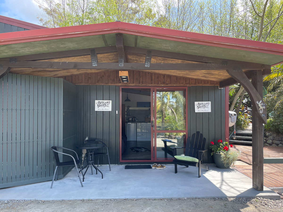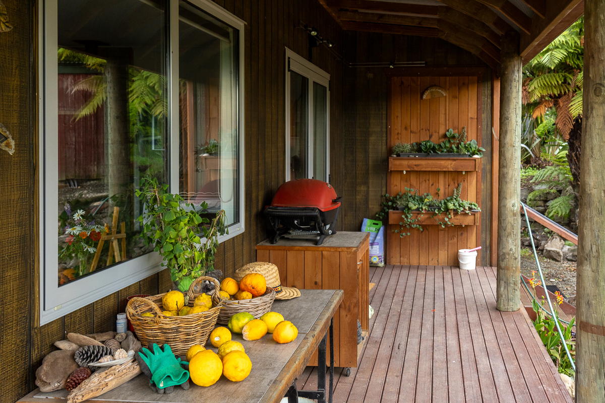 Das grössere der Gästehäuschen war meine Unterkunft. Daran angrenzend zum gleichen Gebäude gehörte eine Werkstatt, eine Garage und das Bad für die Gäste des kleinen Häuschens. Dieses war so klein, dass kein Bad darin untergebracht werden konnte. Meine Unterkunft bestand aus zwei Räumen, dem Bad und dem Wohnraum. Der Schlafbereich lag hinten beim Bad und war durch eine schätzungsweise 1,5 Meter hohe Wand halb abgetrennt vom Rest. Auf der gegenüberliegenden Seite der Wand befand sich die Küche. Alles war modern eingerichtet und sauber. Am Sofa liessen sich Fusslehnen ausklappen. Es hatte auch einen Esstisch. Und einen TV, auf dem ich am liebsten den Maori-Sender mit seinen Hakas schaute, obwohl ich natürlich kein Wort verstand. Die Unterkunft hatte einen kleinen Holzofen, den ich abends ein paar Mal benutzte. Nachts fiel die Temperatur noch immer unter 10 Grad, und das Häuschen hatte keinerlei Isolation. Der Holzofen wärmte den grossen Raum etwas dürftig, war aber besser als ein Elektroofen. Tagsüber konnte es drinnen sogar zu warm werden, wenn die Sonne aufs Blechdach brannte.