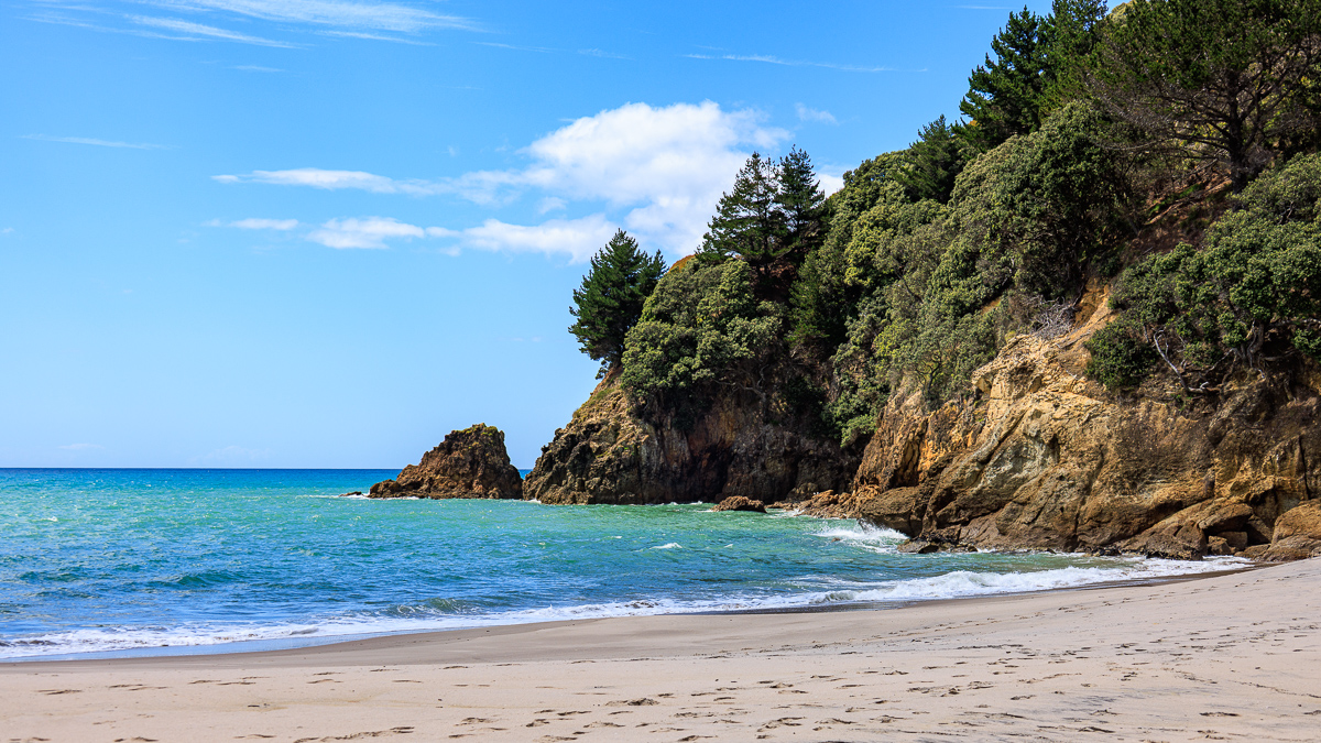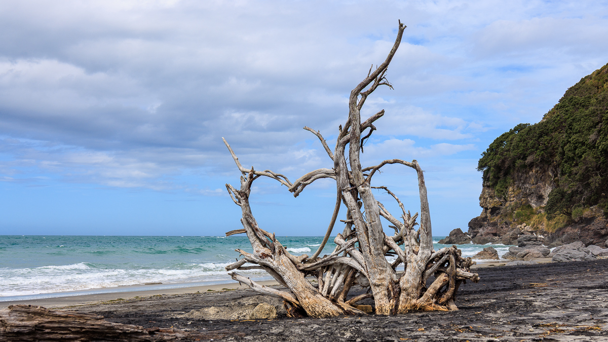 An einem schönen Tag fuhr ich Richtung Coromandel Peninsula – die gesamte Küste sah im Internet vielversprechend aus. Ich hatte allerdings keine Lust, den ganzen Tag Auto zu fahren und hielt schon relativ früh, am Waihi Beach. Das war grosser, ziemlich menschenleerer Sandstrand. Viele hübsche, angeschwemmte Muscheln. Zum Baden war es nach wie vor viel zu kalt. Ich unternahm einen Spaziergang zum nächsten Sandstrand weiter nördlich; der Weg führte wieder einmal durch einen dieser wunderschönen Wälder. Dieser zweite Strand war kleiner, aber schöner, mit Bäumen, deren Äste dem Sand nach Richtung Meer wuchsen und sich dort in den Boden eingruben, als wären es Baumstämme. Märchenhaft sah das aus. Ich rollte das zu kleine Badetüchlein unter dem Halbschatten eines solchen Baumes aus, starrte die Wolken an und lauschte dem Meer. Gegen Mittag kamen vermehrt andere Leute. In der Sonne schmoren war wohl keine gute Idee, im Schatten hingegen war es nicht richtig warm; ich machte mich also auf den Rückweg. Dort ass ich im so ziemlich einzigen Restaurant des Ortes einen Beefburger mit Fries. Der schmeckte gut, und ich merke, dass es mir gut tat, mal über Mittag was Rechtes zu essen, statt immer abends um sechs völlig ausgehungert zu sein. Erst jetzt begriff ich, dass man in Neuseeland immer an den Tresen gehen musste, um in einem Restaurant zu bezahlen.