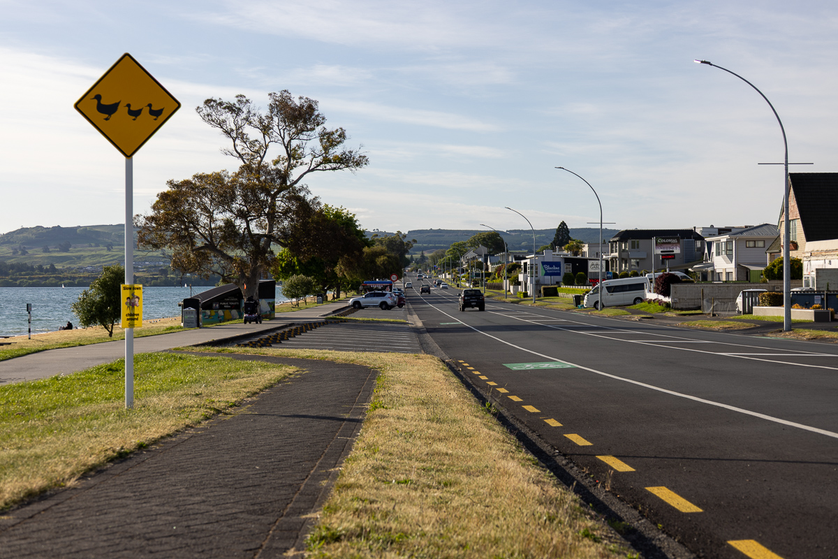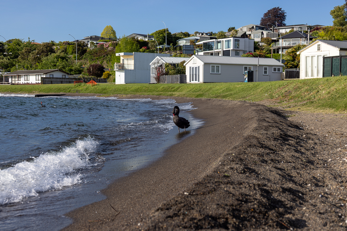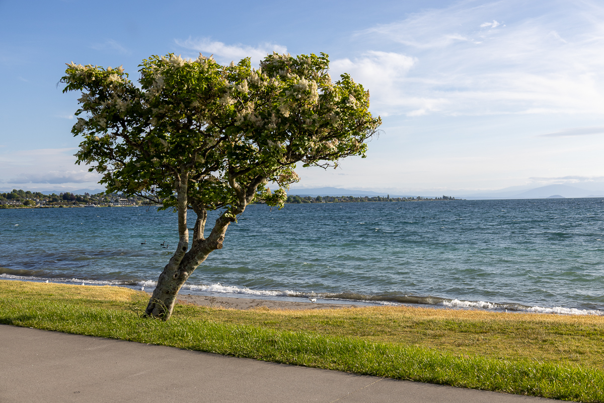 Taupo hatte einige Dinge mit Rotorua gemeinsam: Die Lage an einem See, warme Quellen, Tourismus. Die Stimmung gefiel mir hier jedoch auf Anhieb viel besser als in Rotorua. Taupo war kleiner und hübscher, nicht wenige Häuser hatten sogar Ziegel, was ich in Neuseeland zum ersten Mal bewusst wahr nahm. Es stank hier nicht nach Schwefel. Vor allem jedoch war der Ort friedlich und entspannt, dennoch lebendig, mit vielen Restaurants. In Rotorua war tote Hose, aber irgendwie nicht relaxed, eher suspekt. Die unangenehme Art von ruhig.