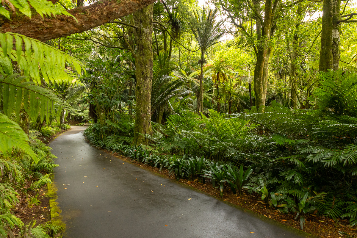 Ein weiterer Ausflug führte mich nach Pukeiti, einem Rhododendron-Garten mit angrenzendem Regenwald. Sehr hübsch gemacht, einmal mehr. Besonders der Bach mit dem Wasserrad. Am Morgen kaum Leute, einmal mehr. Der Eintritt war gratis, es hatte ein Café und saubere Toiletten. Der Regenwald-Teil war sehr viel grösser als der Garten, wie ich feststellte, als ich drin herumwanderte. Ich kam zu einer Hütte, die geschlossen war. Trotzdem gefielt mir alles sehr gut.