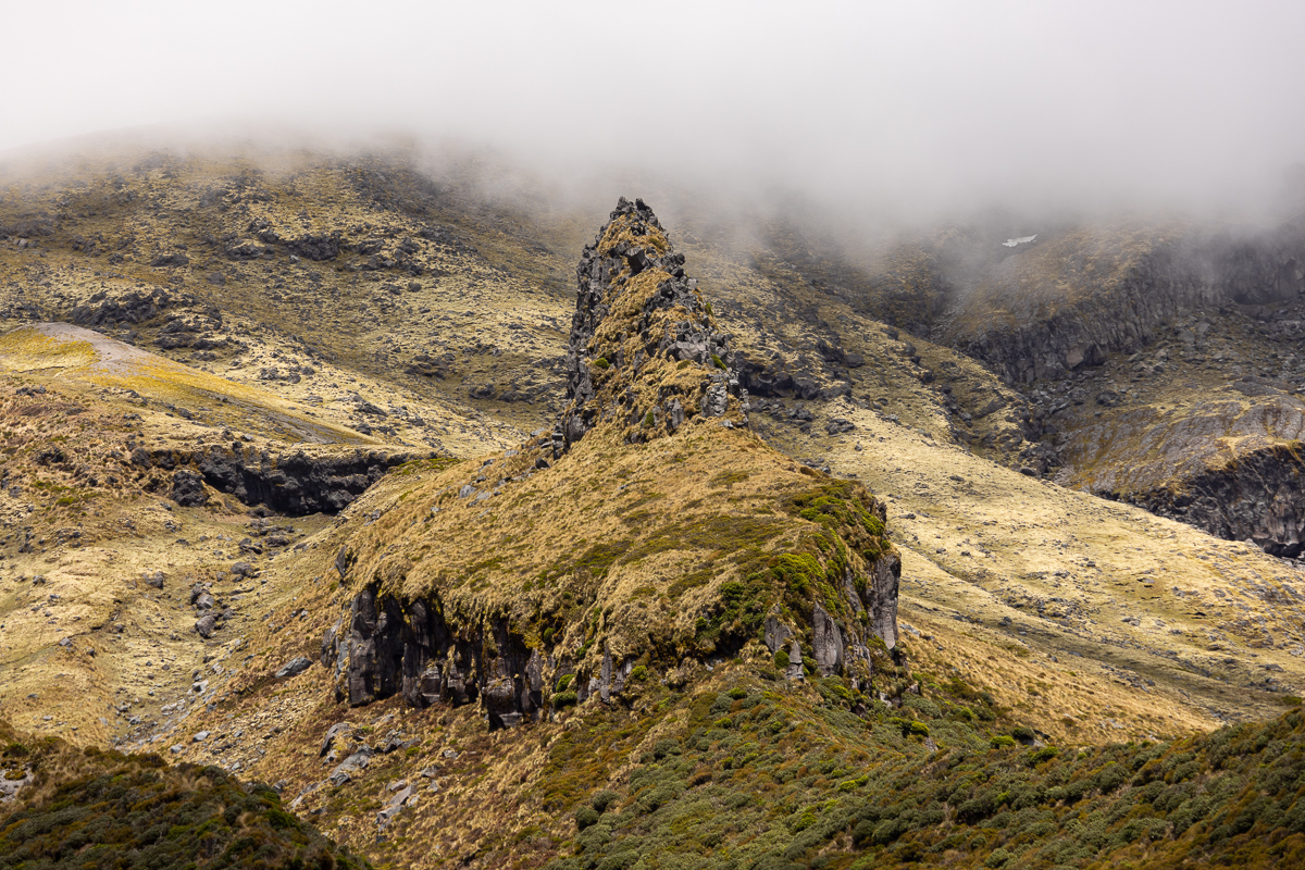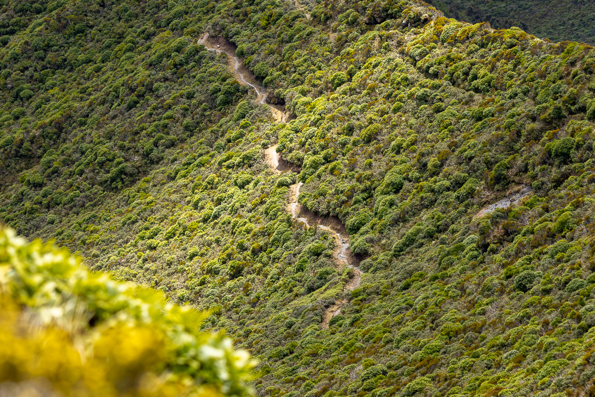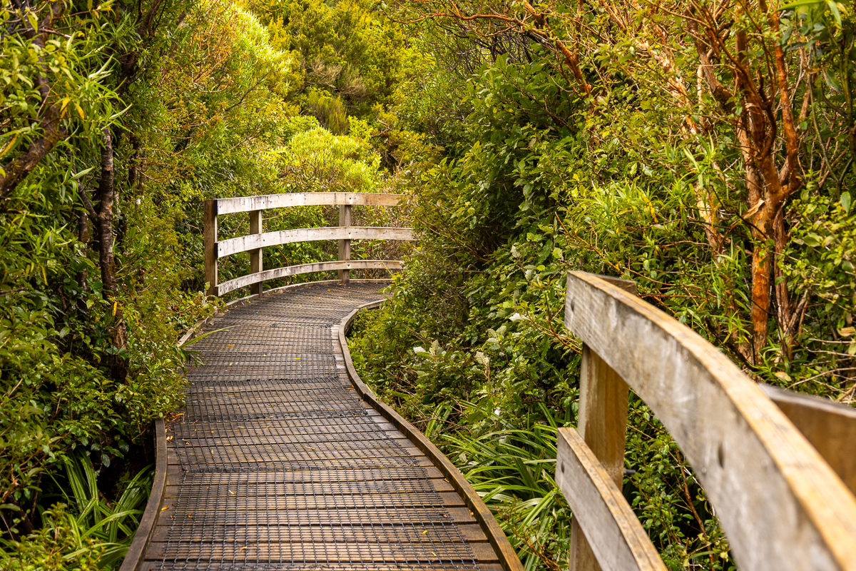 Das Quartier meiner Unterkunft hiess Vogeltown und lag leicht erhöht; ich brauchte nur zwei Kurven die Strasse hinauf zu gehen, schon hatte ich einen prächtigen Blick auf den Mount Taranaki alias Mount Egmont. Allerdings nur bei schönem Wetter. Ich fuhr zwei Mal zum Berg. Das erste Mal bei schlechtem Wetter, weil ich von Emily den Tipp erhalten hatte, dass dort ein «Goblin Forest» zum Wandern liege, der so toll sei, dass es aufs Wetter überhaupt nicht ankam. Als ich bei 8 Grad auf dem Parkplatz stand und das Auto vom Wind wackelte, war ich zunächst skeptisch und zögerte, überhaupt auszusteigen. Doch einmal im Wald, war der Wind wie weggeblasen und die Wolken respektive der Nebel lichtete sich. Es wurde eine schöne Wanderung.